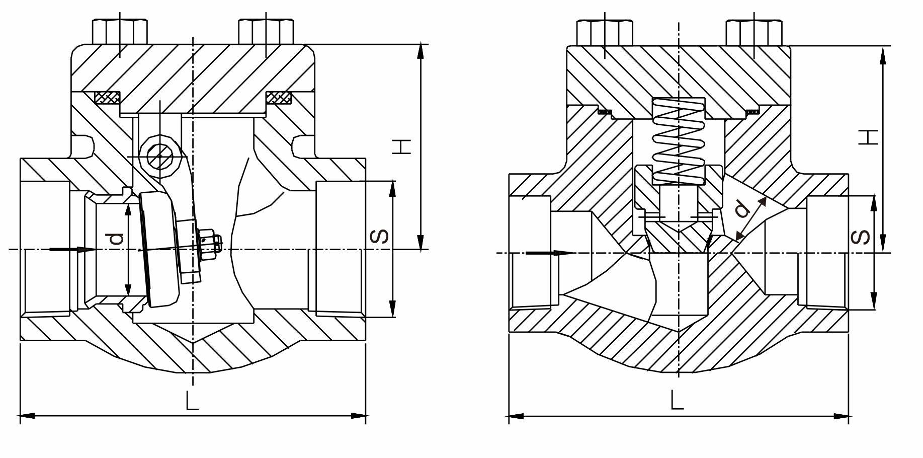 2. The shape of the valve body is the same as that of the globe valve, so its fluid resistance coefficient is large. The upper part of the valve disc and the lower part of the valve cover are machined with guide sleeves. When the medium flows downstream, the valve disc is opened by the thrust of the medium. When the medium stops flowing, the valve disc falls on the valve seat by itself, which prevents the medium from flowing backwards.