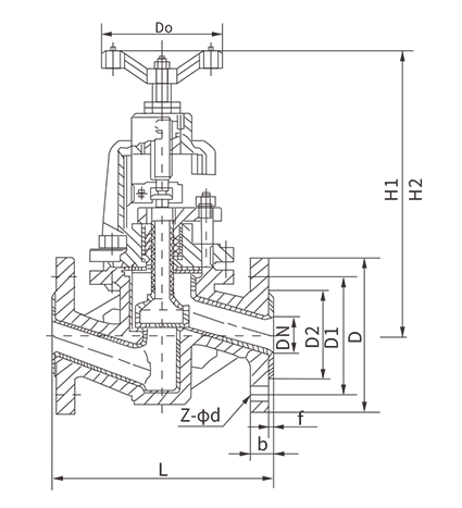 | 公称通径(DN) | L | D | D1 | D2 | b | f | H | H1 | D0 | Z-φd |